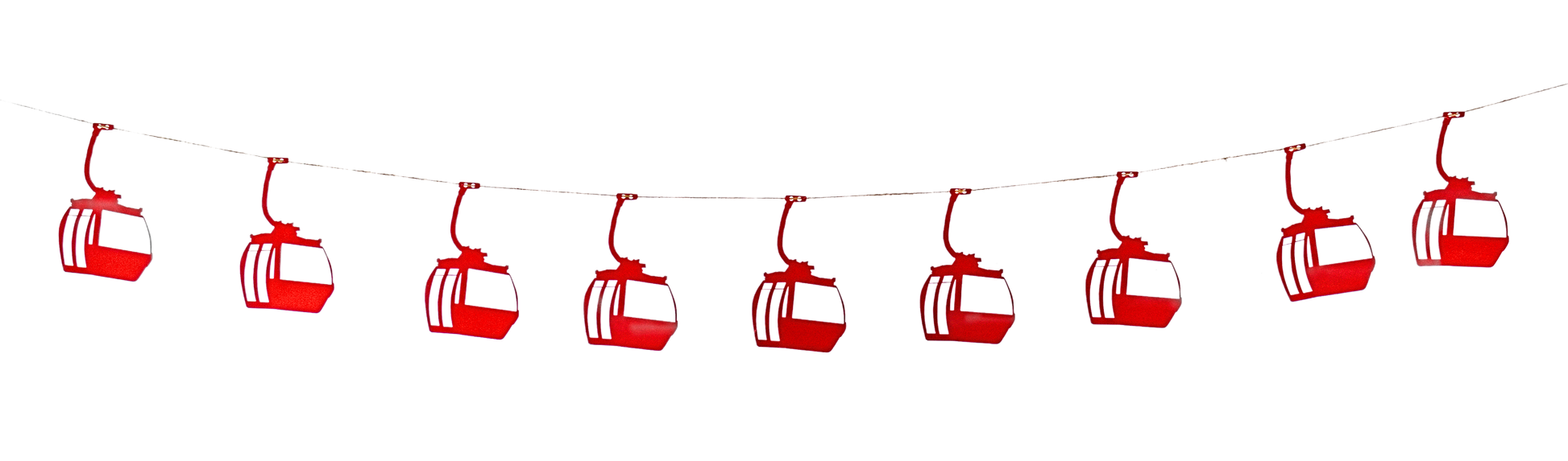 Get ready to amp up your decor game with The Creative Garland Company's Ski Gondola Garland! We're talking 10 adorable gondola replicas hanging from 15 feet of twine, available in black, natural/off-white, and red—ideal for those festive feels. With adjustable spacing, you can customize the garland's length to suit your space perfectly. But wait, it gets better: personalize your garland with your favorite dog, cat, or gnome for a vibe that's as unique as you are (sold separately). Whether it's jazzing up your mantle, framing a window, or adding some flair to your walls, this garland turns any space into a hip ski retreat. Crafted with mad skills and love, each chairlift is a tiny work of art, bringing that mountain magic straight to your home. So, why settle for basic decor when you can kick it up a notch with The Creative Garland Company? Get ready to groove with your decor—because cooler spaces and better vibes are just a garland away.